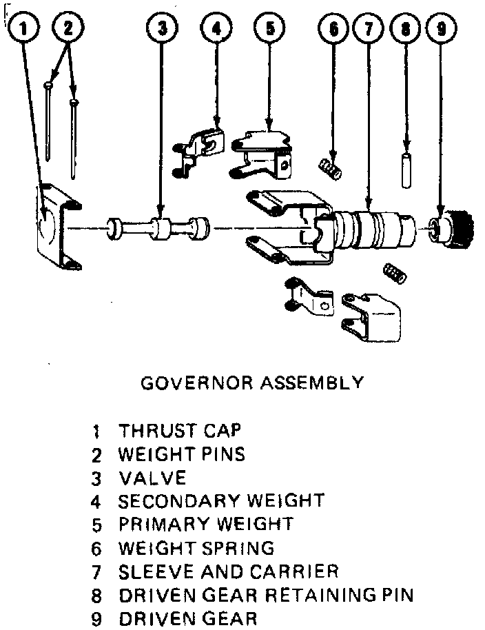 10. Install valve into case, then the weights, springs and thrust cap onto governor assembly.