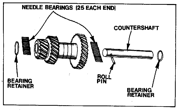 2. Hold appropriate dummy shaft in gear and install 25 needle bearings and a retainer washer in each end of gear.