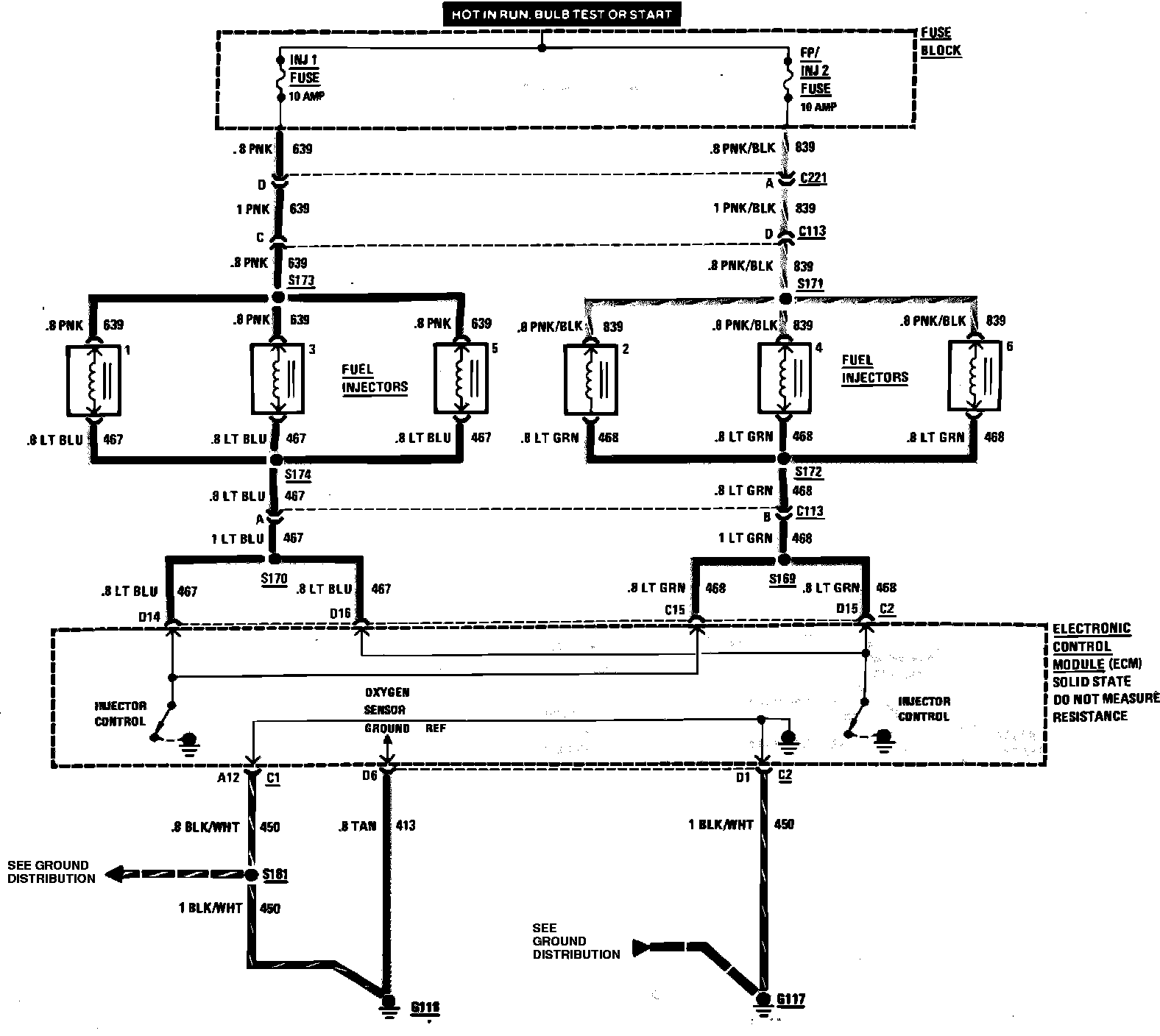 Fuel Injection/Multi-Port Wiring Circuit (Fuel Injectors). W/V6-173/2.8L: