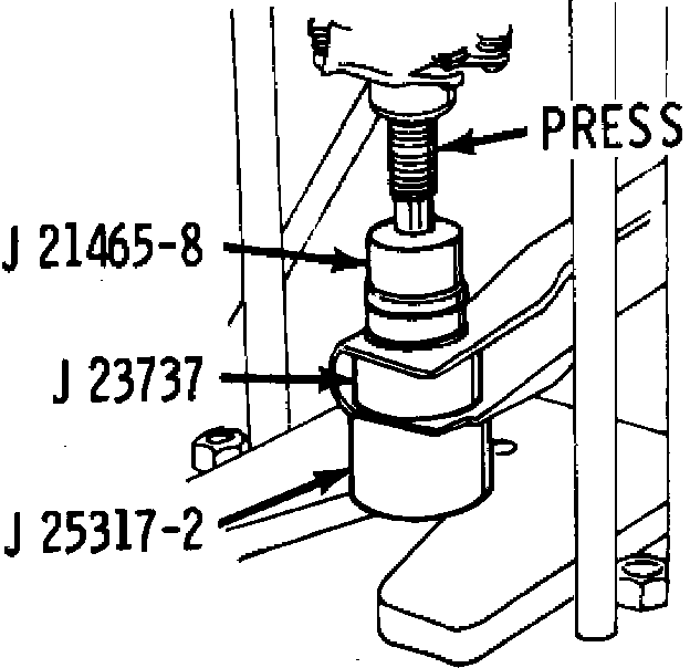 The upper control arm rear bushing, which is pressed into the differential carrier, can be replaced using the following procedure: