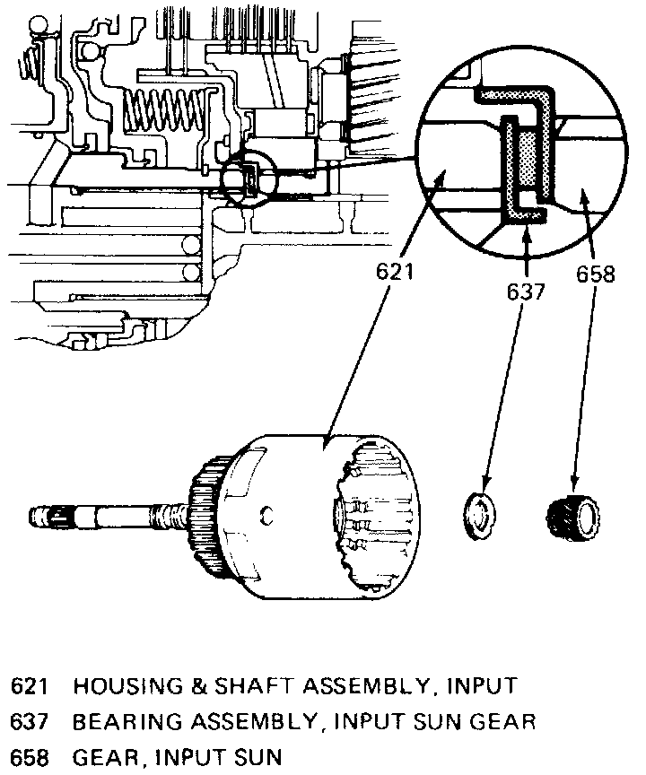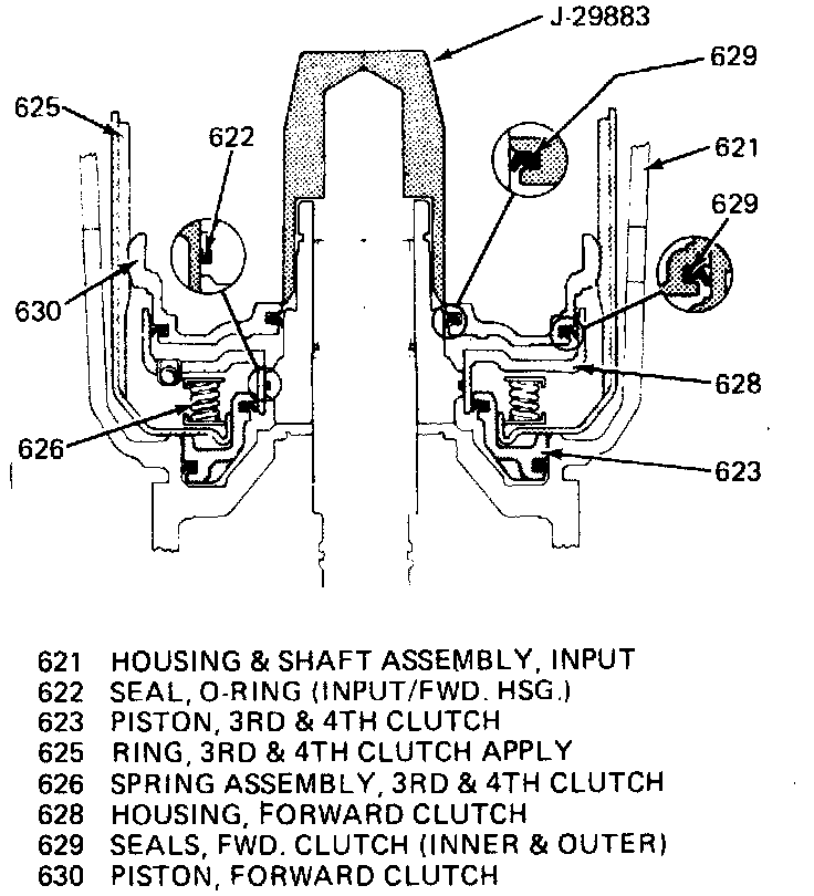 5. Inspect input housing check valve ball for free movement Leak check the ball with solvent, if necessary. If the 3-4 clutch plates are burned or worn and no cause is found during diagnosis or disassembly, replace input housing and shaft assembly. The check valve ball may be operating erratically due to seat damage. Do not try to tap on the ball to form a new seat.