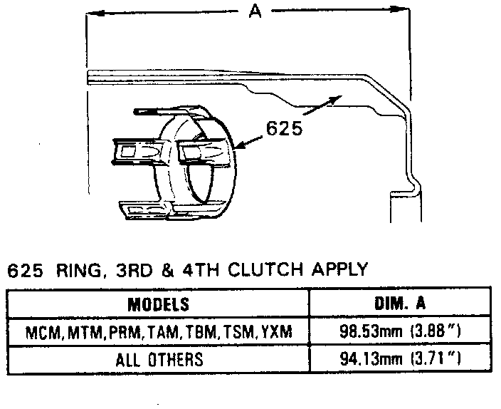 7. Inspect 3-4 clutch apply ring for bent tangs and correct tan length. Refer to image.