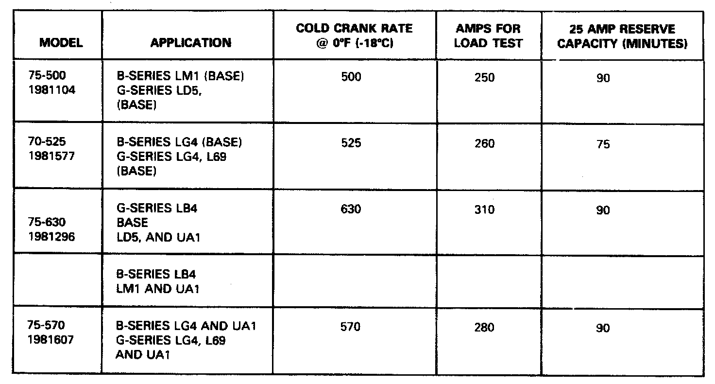Starting and Charging: Specifications
