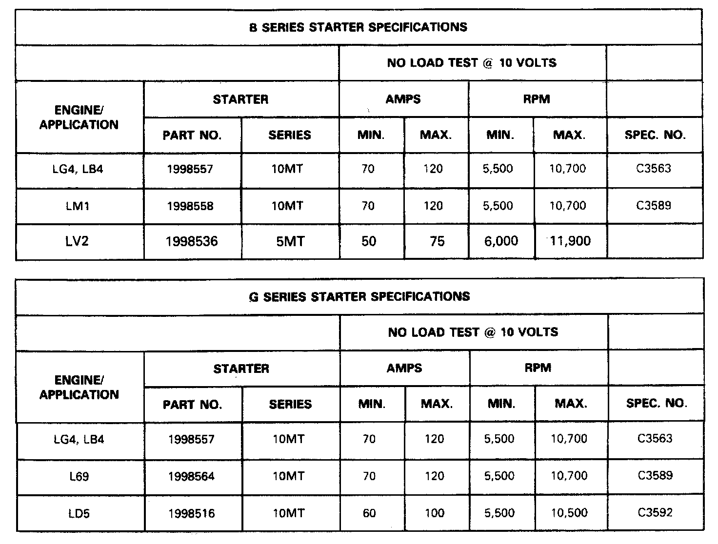 STARTER SPECIFICATIONS