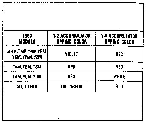 Fig. 95, 1-2 & 3-4 accumulator spring chart. 1987: