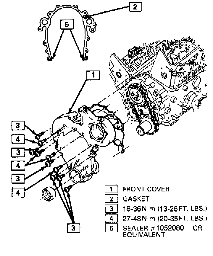 2. Apply GM P/N 1052080 sealer or equivalent to sealing surface of timing cover.