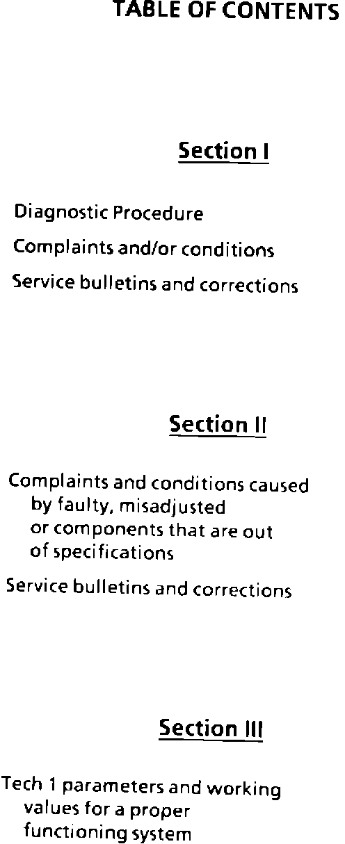 General Motors has released many service bulletins and calibration MEM-CALS to correct driveability concerns during the 1987 through 1990 model years for the 2-8/3.1 liter applications. This handy pocket guide will allow the technician to easily select the proper bulletin and MEM-CAL using the customer complaint as the reference for determining the correct diagnostic procedure. This guide contains our latest driveability MEM-CALS and bulletin updates. All previous 2.8/3.1 liter driveability complaint bulletins should not be used. It is important to remember that the 2.8/3.1 liter engine uses "Closed Loop" fuel and spark control technology. For this reason, it is very important that all of the engine components and the base engine assembly are in proper working order. The Electronic Control Module (ECM) uses the inputs from its sensors as the basis for calculating fuel and spark. A component that is not functioning properly will cause false values to be used in the closed loop fuel and spark calculations resulting in a possible driveability complaint by the customer. This guide is not intended to take the place of the Service Manual for diagnosis, but to assist the technician as a quick reference to bulletins, MEM-CALS and correct engine parameters when using a TECH 1 scan tool.