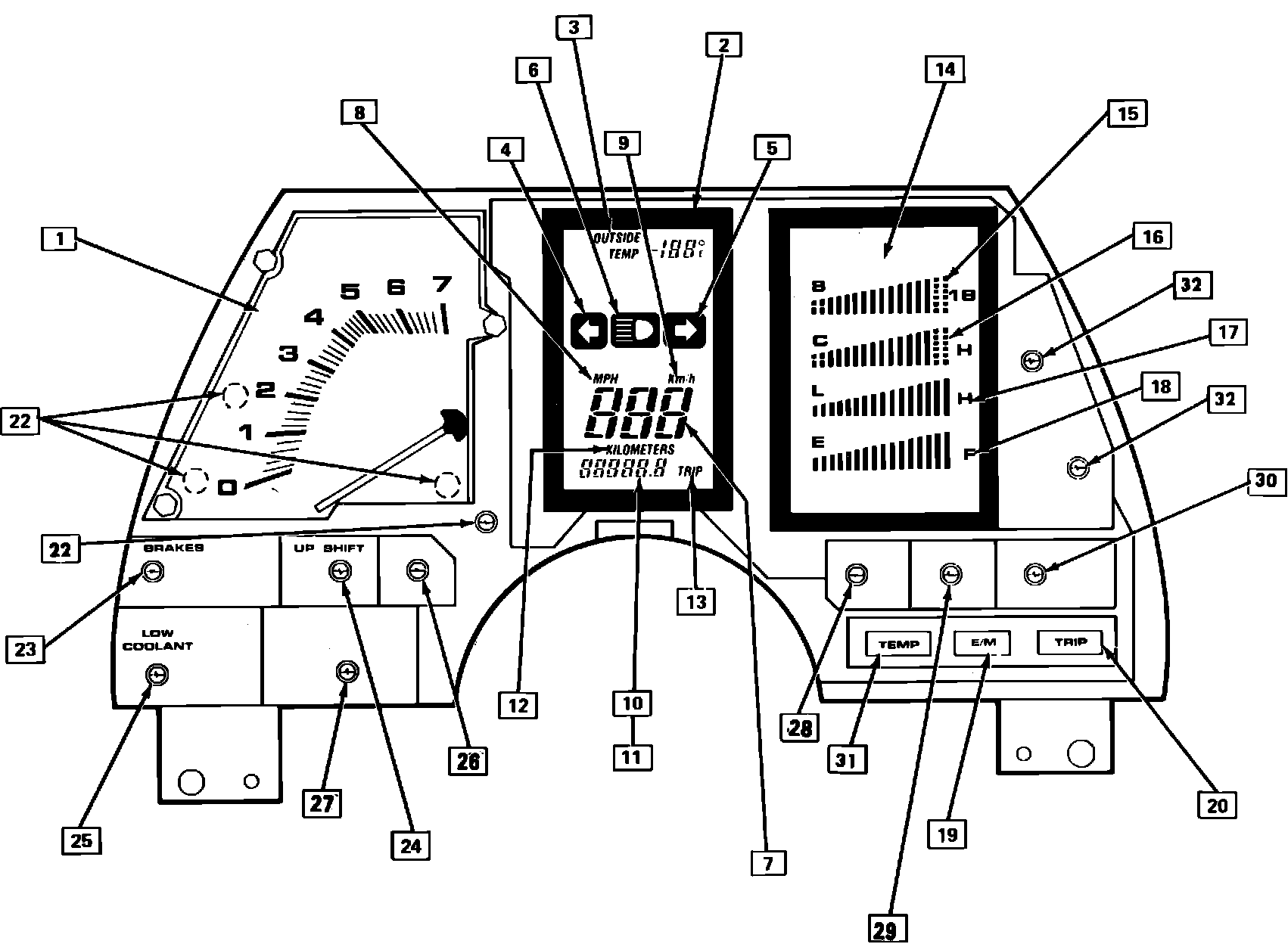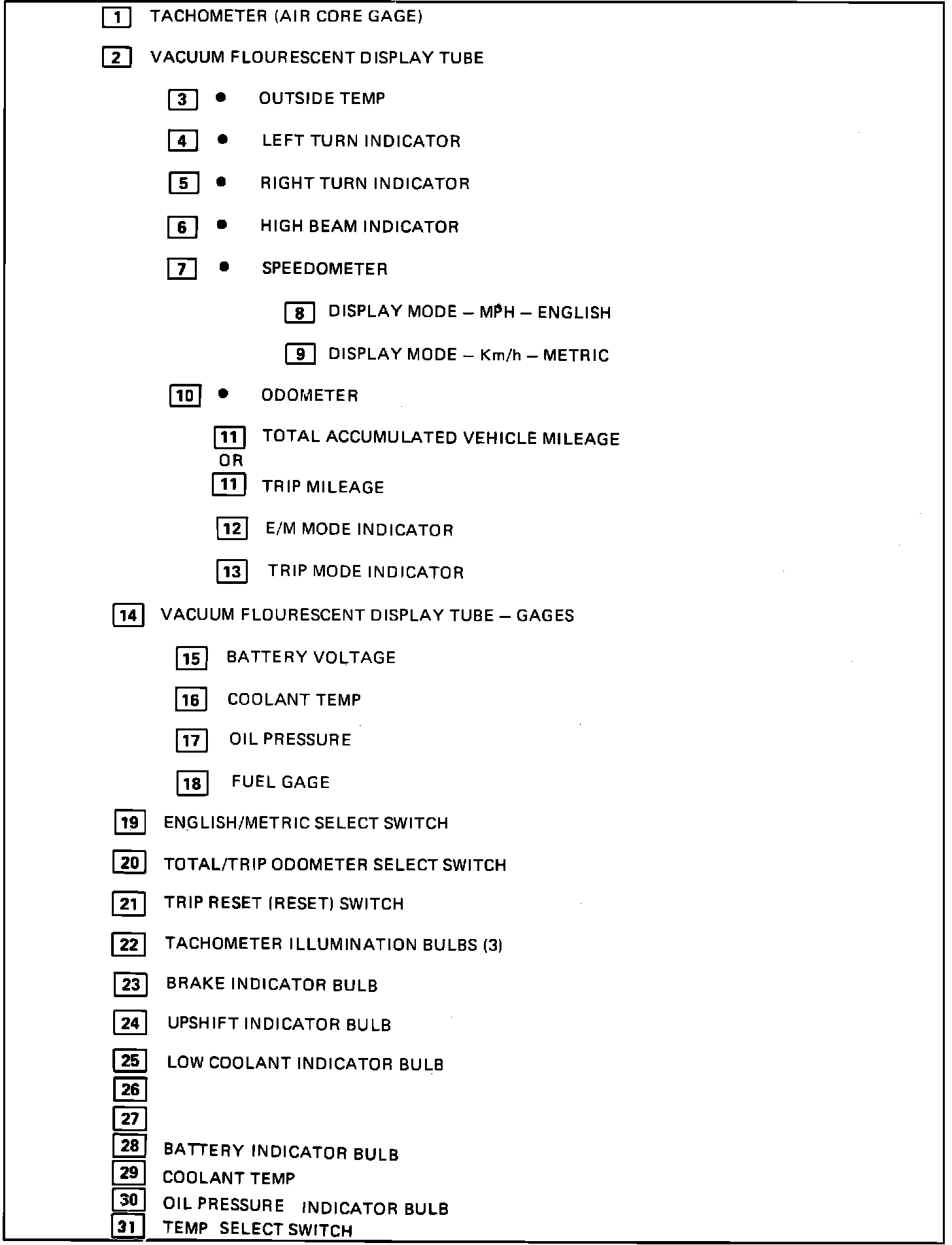 The odometer display is a multifunction display which includes both total odometer and trip odometer indicators. Both are switch selectable and utilize the same display.
