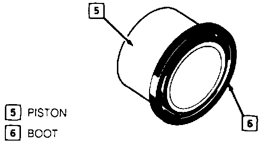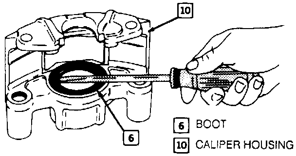 5. Remove boot (6) from caliper housing bore. Be careful not to scratch housing bore.