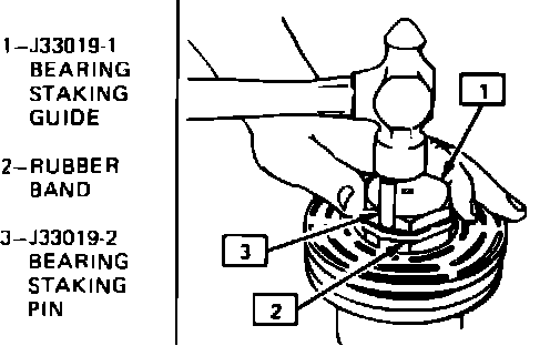 5. Strike staking pin with hammer until metal stake similar to the original is formed. Do not allow staking material to contact bearing outer race, as bearing may be damaged.