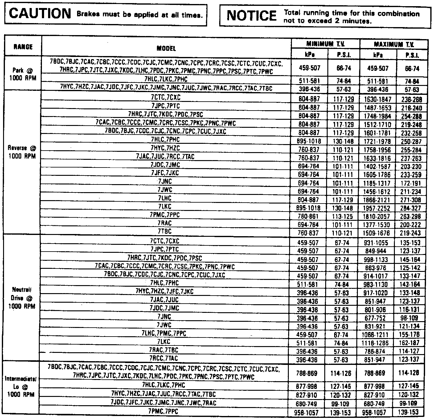 Pressure, Vacuum and Temperature Specifications