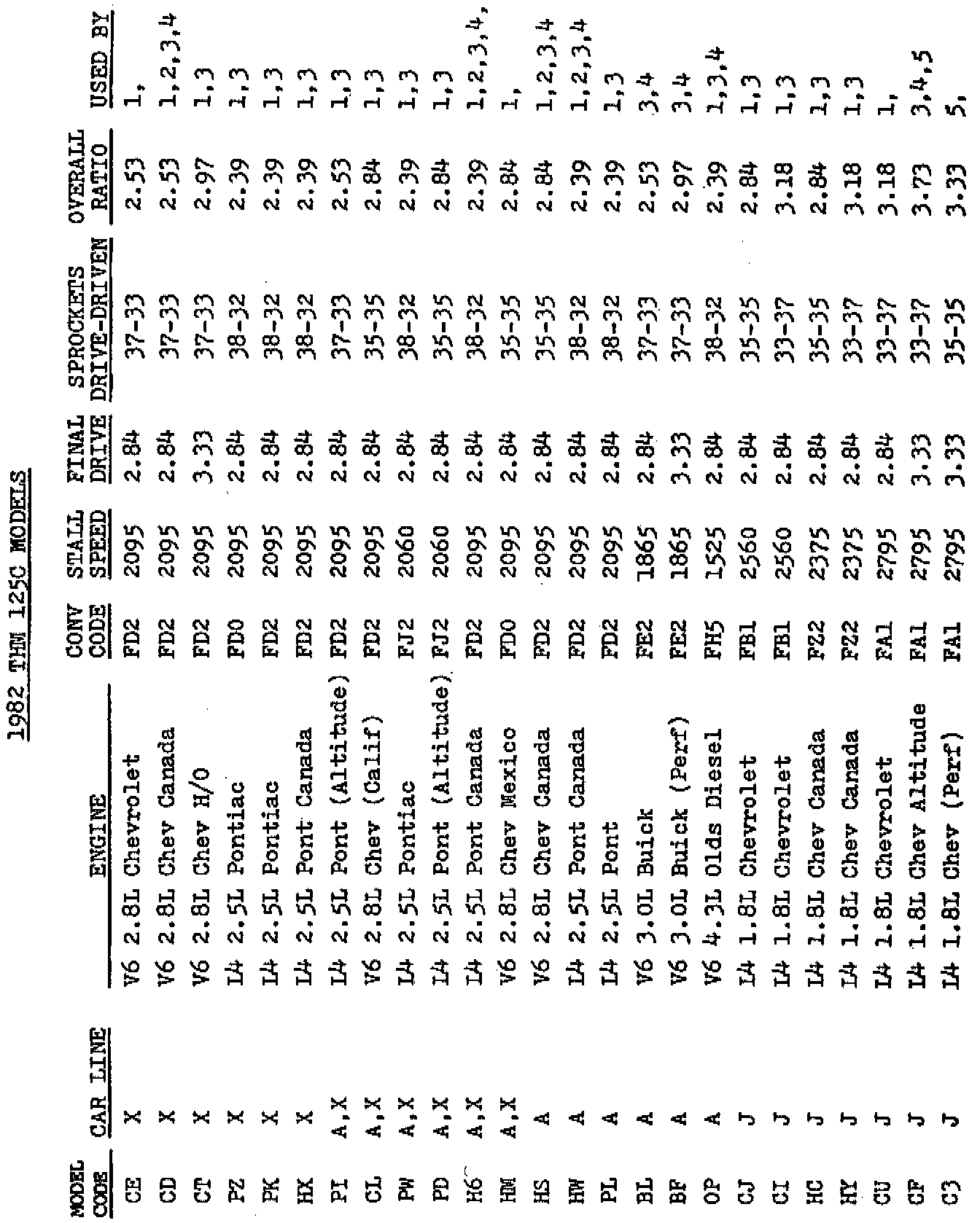 A/T - THM 125C Model Code Information