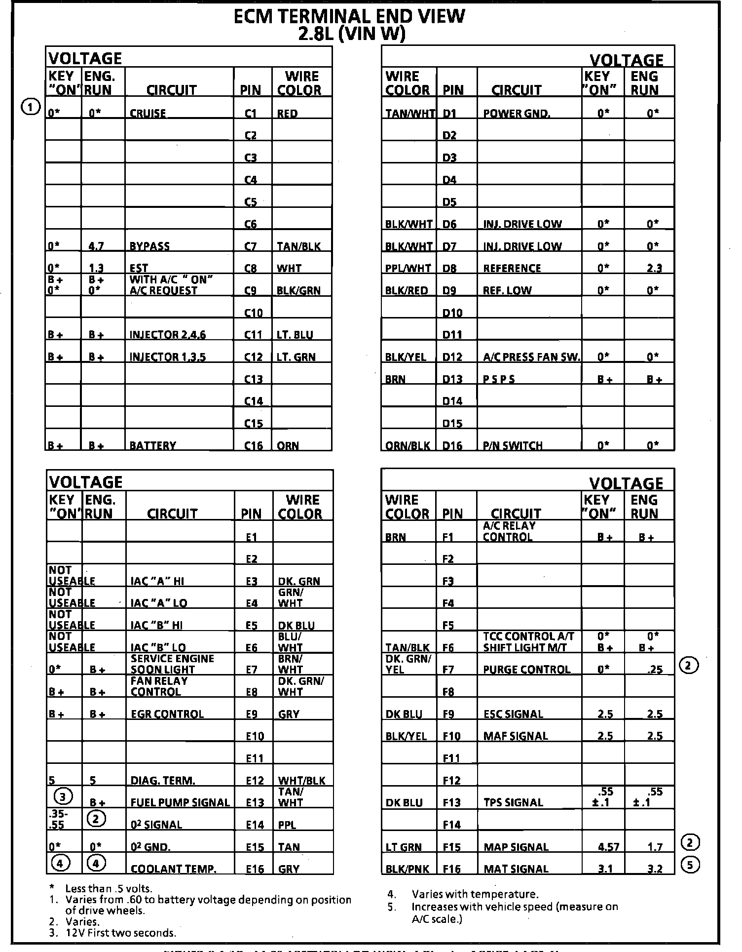 ECM Terminal ID and Voltage Specifications (Part 2 of 2):