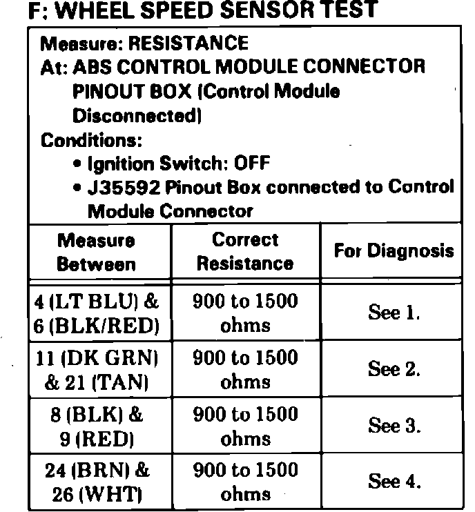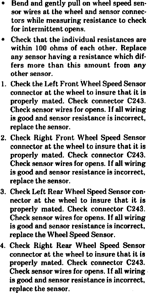 Fig. 20 Wheel speed sensor test (Part 1 of 2). 1986-87: