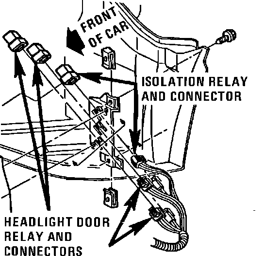 LH Front Of Engine Compartment, On Wheelhouse Headlight Panel: