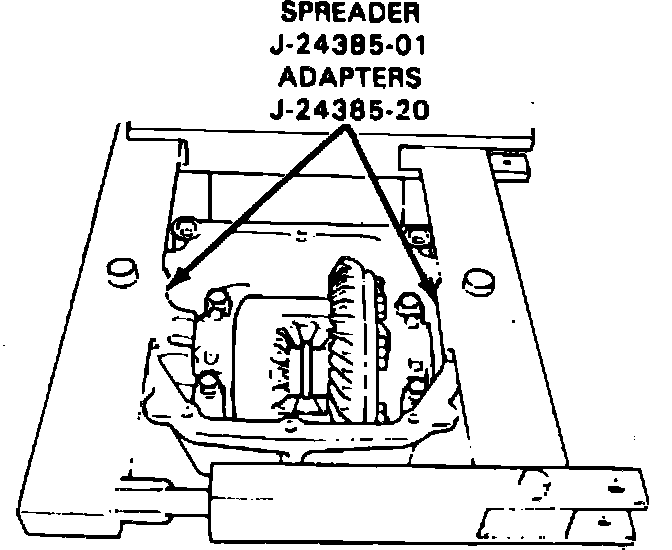 6. While observing micrometer, spread housing with tool. Do not spread housing more than 0.010 inch or distortion could result.