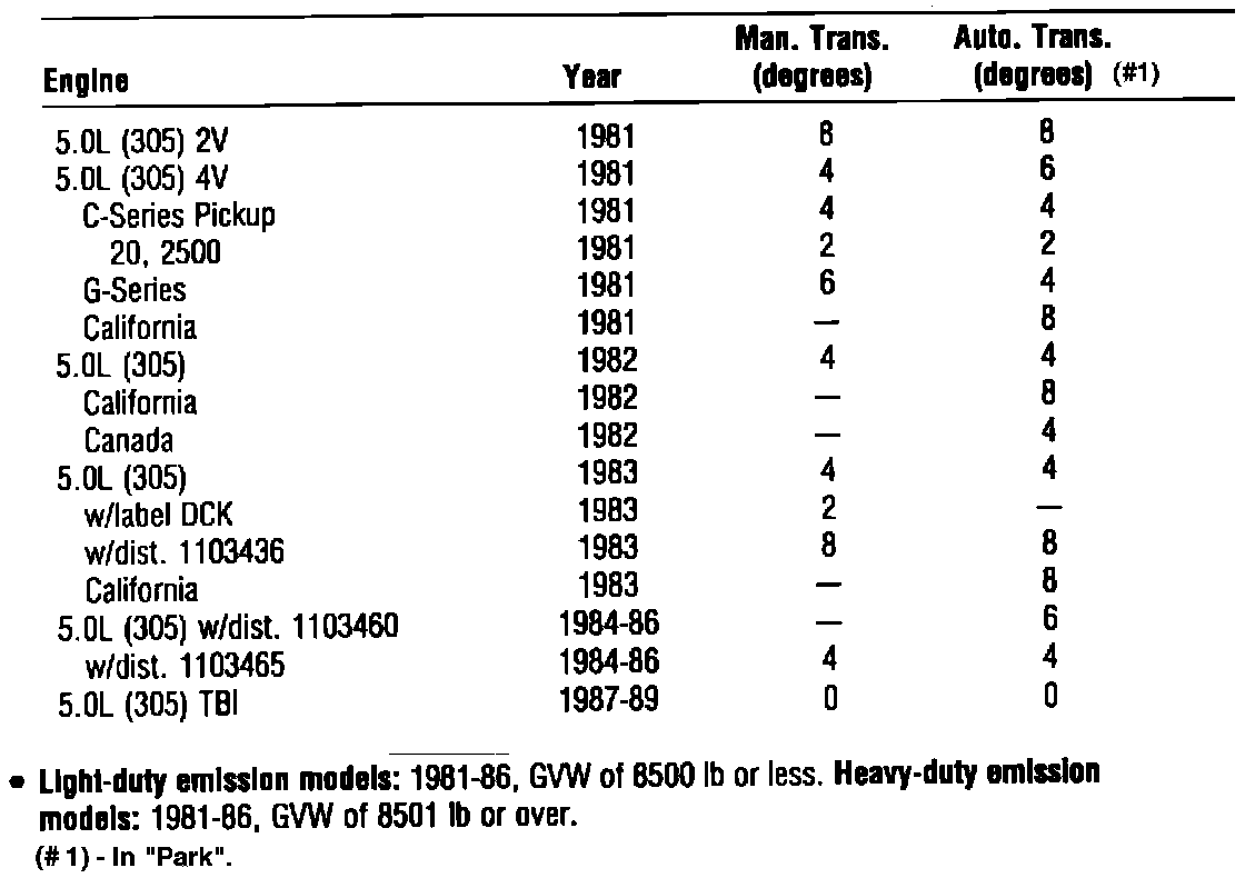 Ignition Timing: Specifications