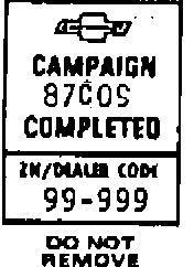 Each vehicle corrected in accordance with the instructions outlined in this Product Campaign Bulletin will require a "Campaign Identification Label." Each label provides a space to include the five digit dealer code of the dealer performing the campaign service. This Information may be inserted with a typewriter or ball point pen.