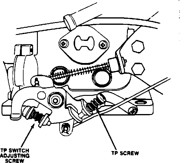 (I). Repeat steps "F" thru "H" to check settings. Make further adjustments if necessary until switch is adjusted to ensure that the "TPS" switch closes between 1600 and 2000 RPM.