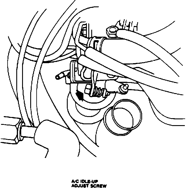 Where applicable adjust air conditioning idle up setting screw (See Figure #2) to 950 plus or minus 50 RPM with air conditioner compressor running, engine cooling fan not running.