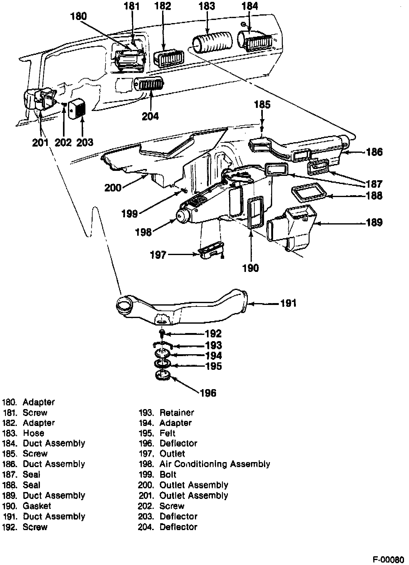 8. Nuts from the three selector duct studs that project into the dash panel.