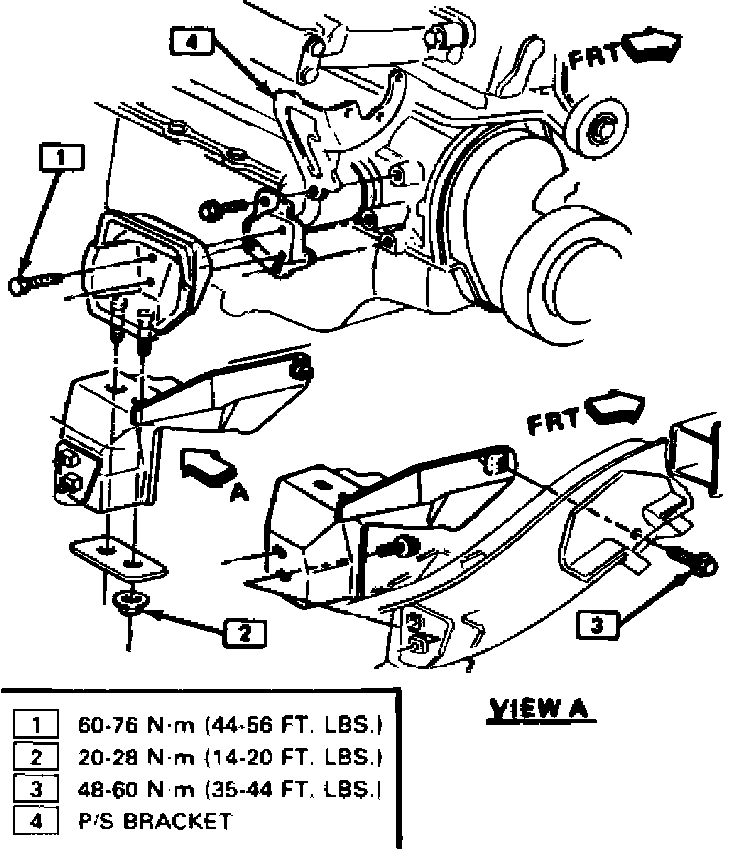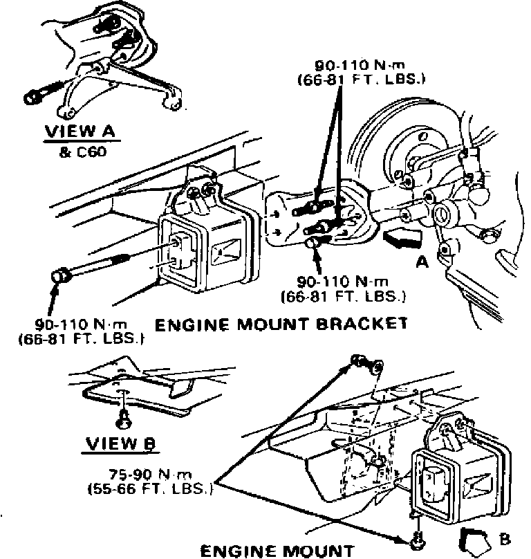 27. Reverse procedure to install. Refer to Figs. 1 and 2, for engine mount torque specifications.