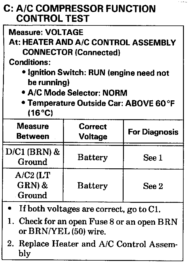 Test C A/C Compressor Function Control Test: