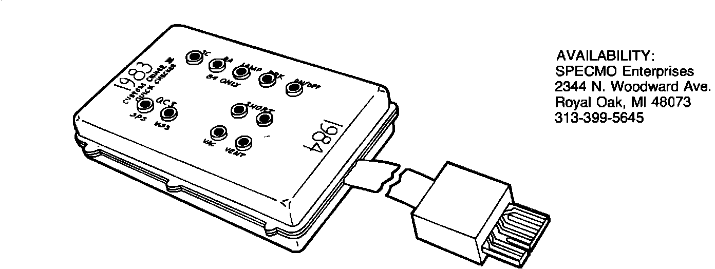 System tester tool No. J-34185, or equivalent can be used to diagnose system malfunctions. The tester replaces the electronic cruise controller (module) in the system and is used to isolate defective components. Use of a tester is highly recommended. Follow tool manufacturers testing procedures and cautions.