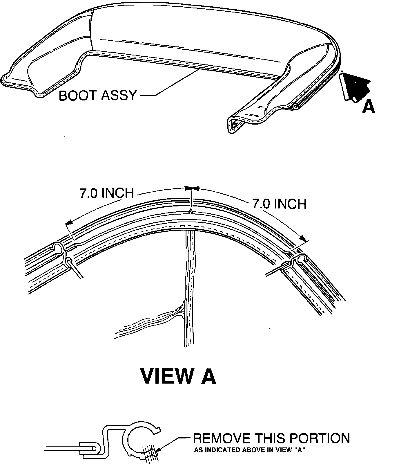 2. Check the retention of the boot rubber retainer to the molding at the rear outboard corners. If the retention of the boot retainer to the molding is unsatisfactory, or if rubber retainer does not retain to the molding, the boot rubber retainer may be modified as follows: