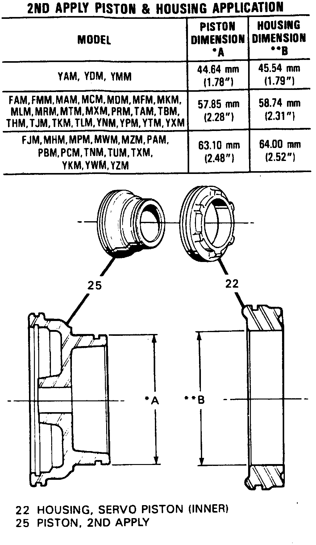 9. Measure piston dimension A and housing dimension B. If measurement is not as specified, replace piston or housing as required.