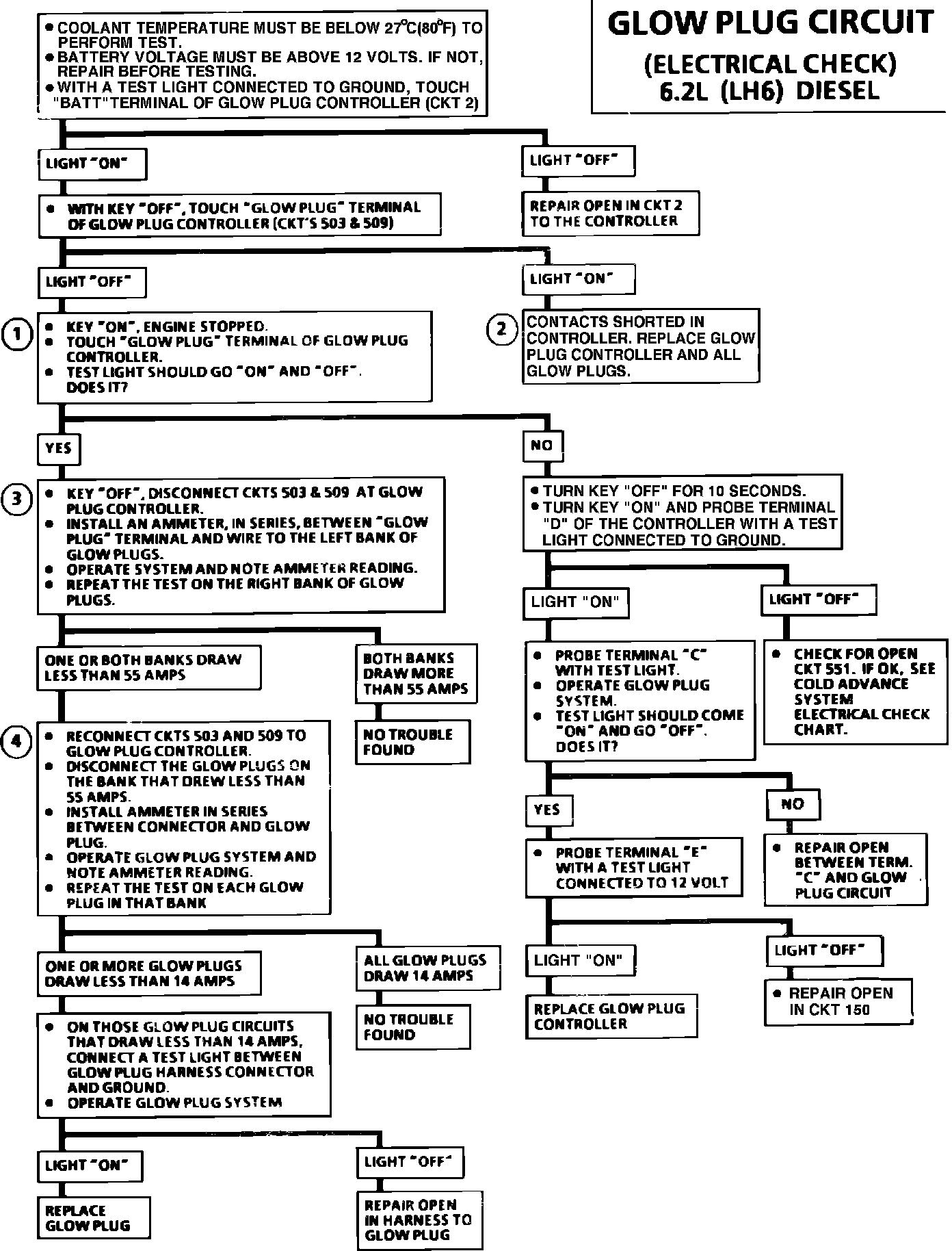 Fig. 57 Glow plug circuit electrical check. 1988: