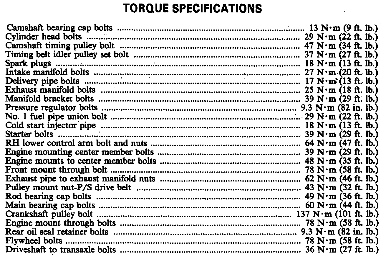 Torque Specifications: