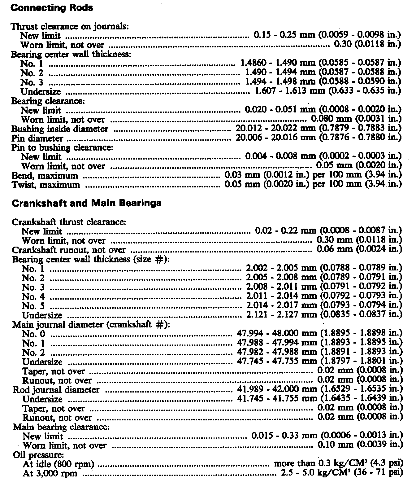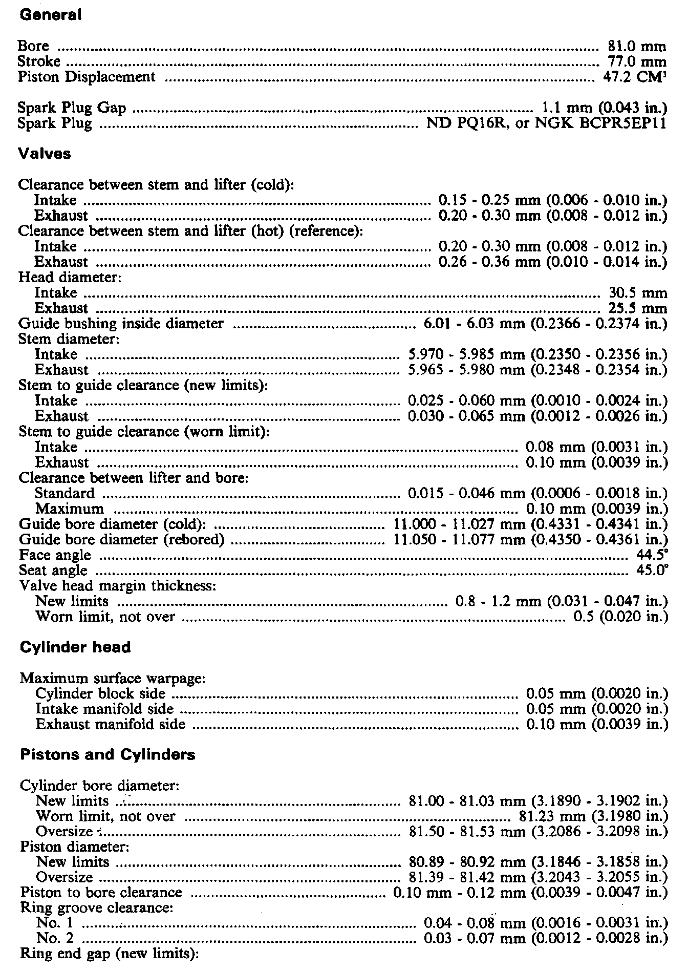 Engine Specifications: