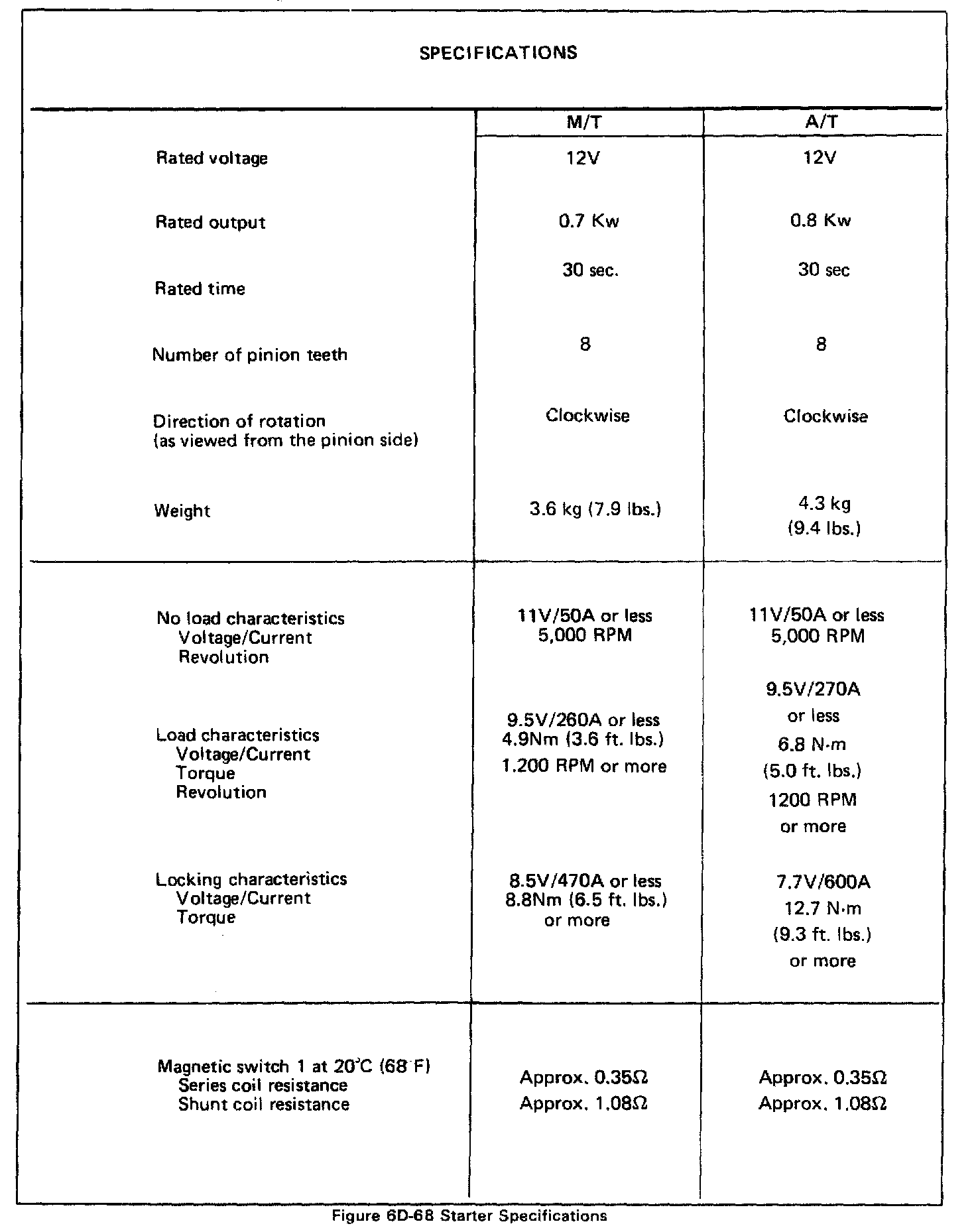 STARTER SPECIFICATIONS