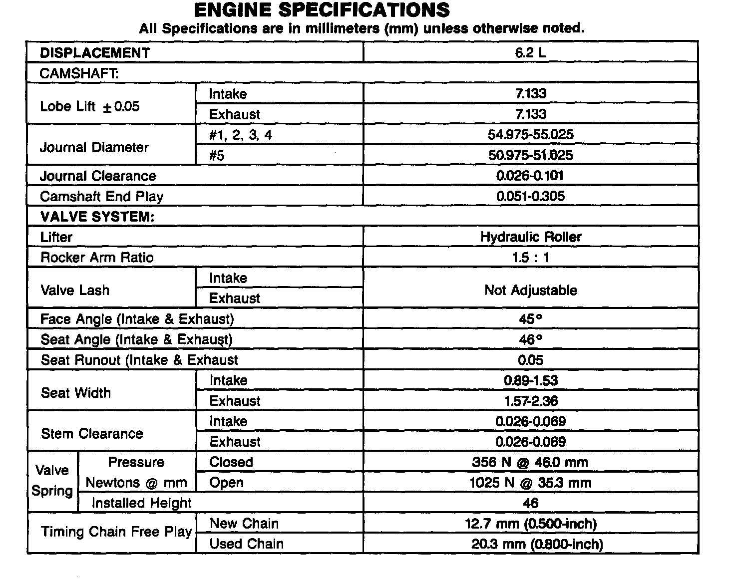 Engine Specifications: