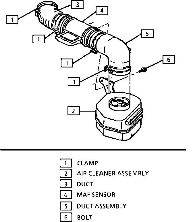 The Mass Air Flow (MAF) sensor is attached to the air inlet duct between the air cleaner and the throttle body, and is used to measure the amount of air which passes through it. The ECM uses this information to determine the operating condition of the engine, to control fuel delivery. The MAF sensor is a component of the computerized engine controls system, for further information see COMPUTERIZED ENGINE CONTROLS.