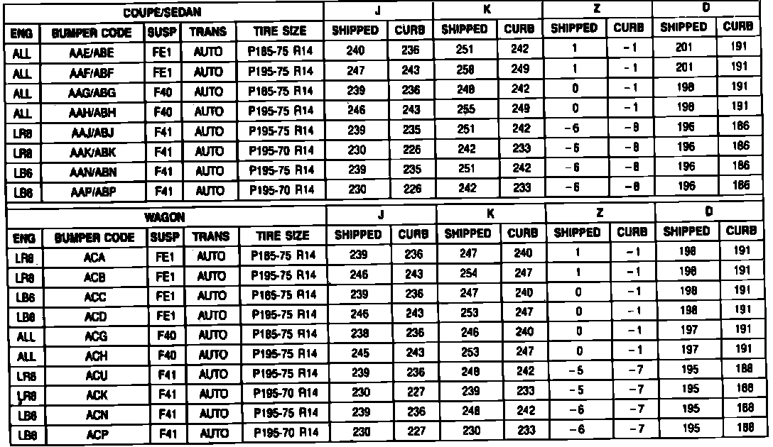 Fig. 2 Ride Height Specifications. 1989 Celebrity: