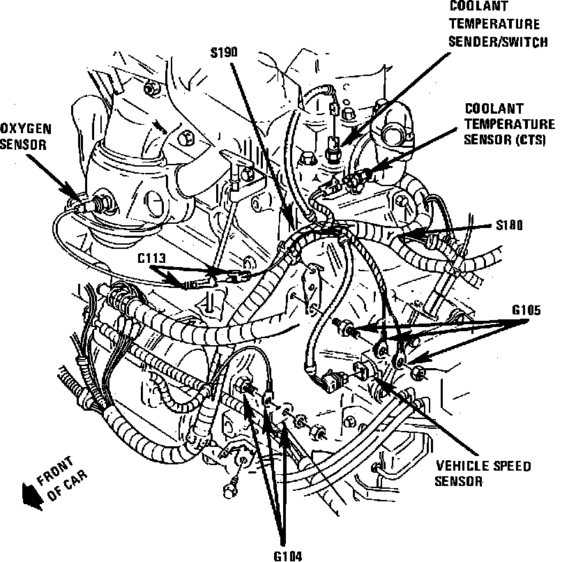 Front Of Engine, In Bottom Of Exhaust Manifold