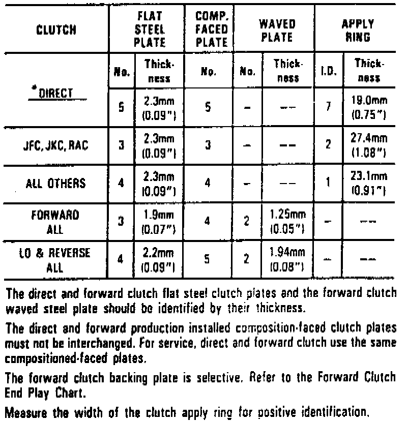 Fig. 52, Clutch plate & apply ring usage chart. 1989 units: