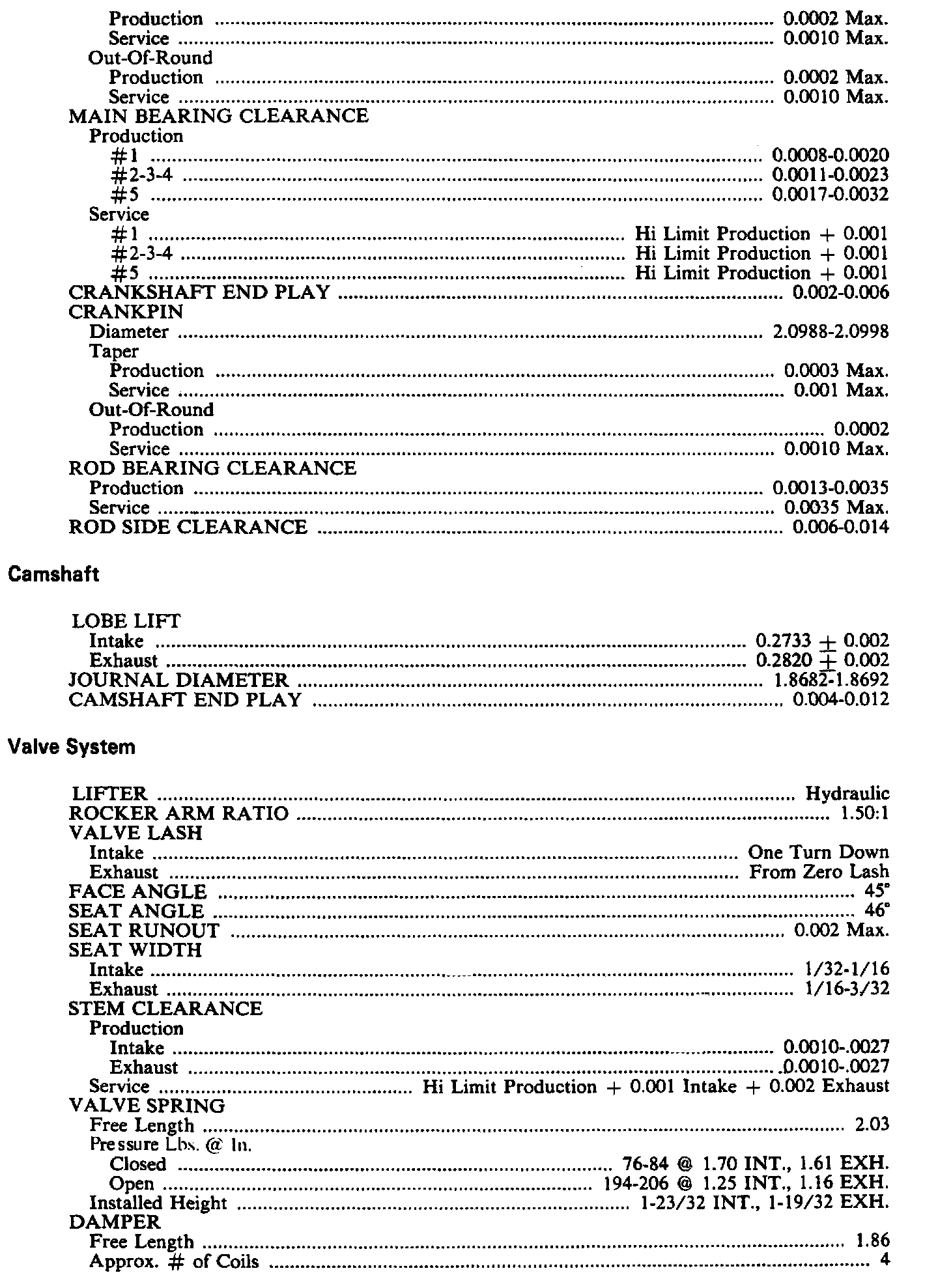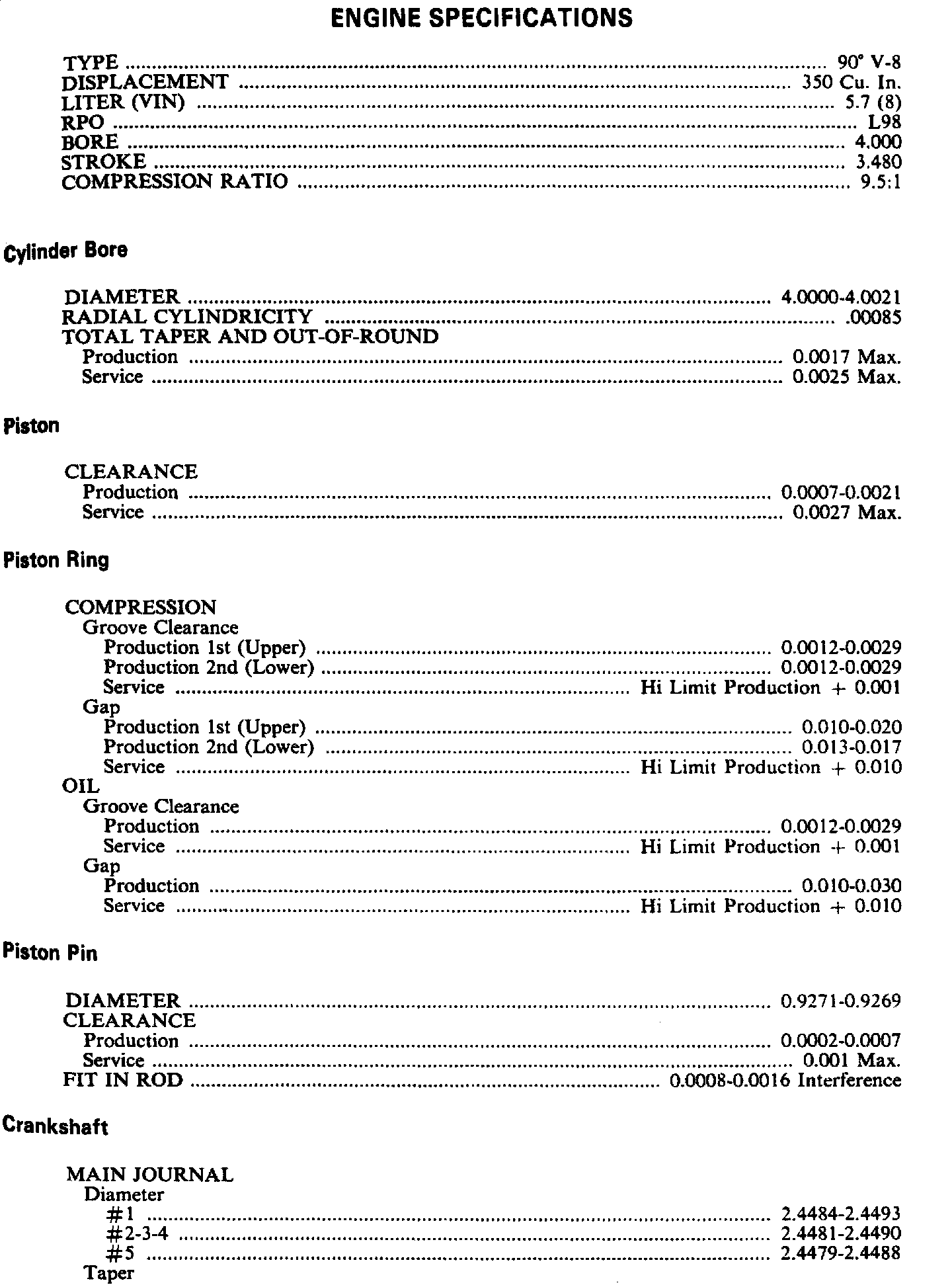 Engine Specifications: