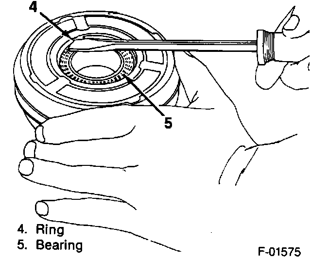 4. Retainer ring (4) to pulley (6) and bearing (5).