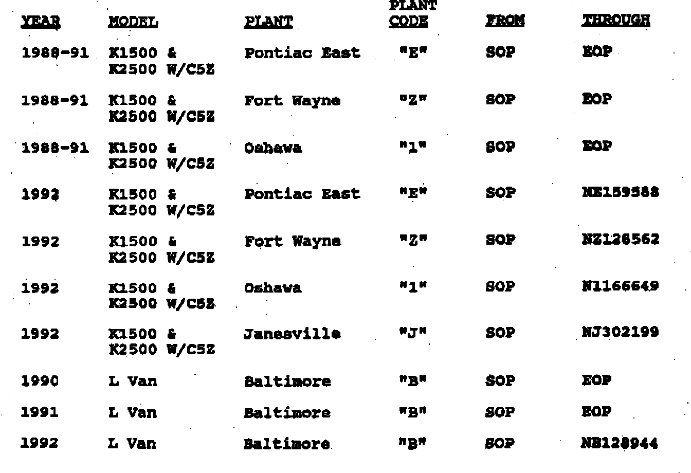 Involved are 1988-92 Chevrolet K1500 models, 1988-92 K2500 models with C5Z GVW rating option, and 1990-92 All-Wheel-Drive Astro van models which operate in severe corrosion states and were built within the VIN breakpoints.