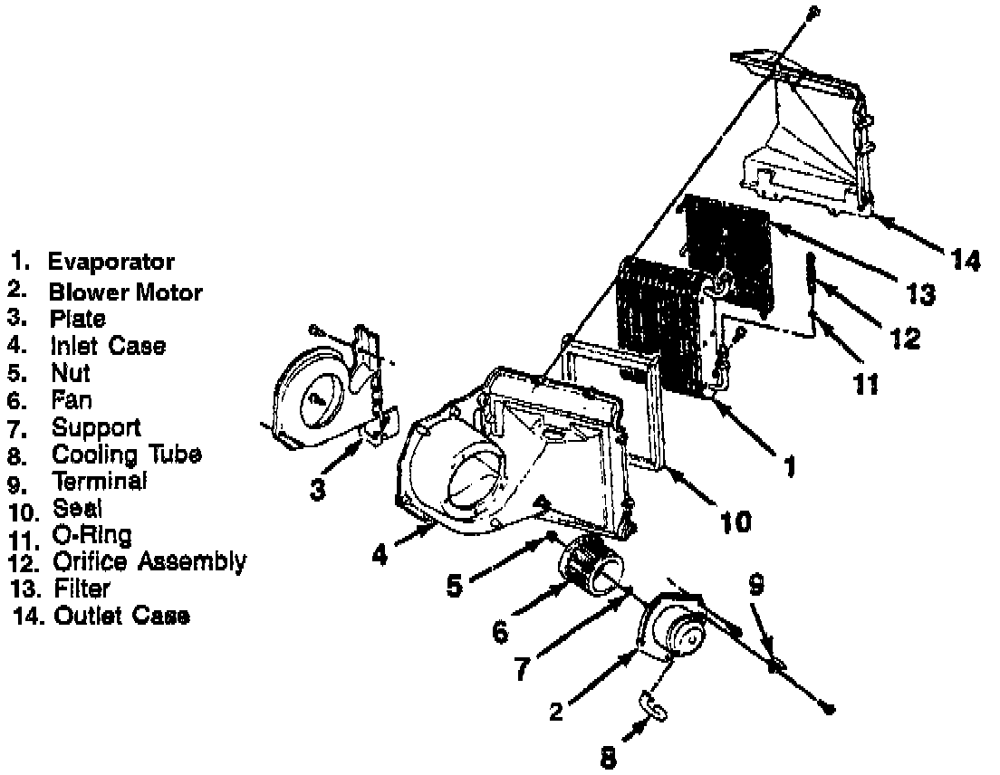The plastic expansion tube, with its mesh screen and orifice, is located in the liquid line between the condenser and the evaporator.
