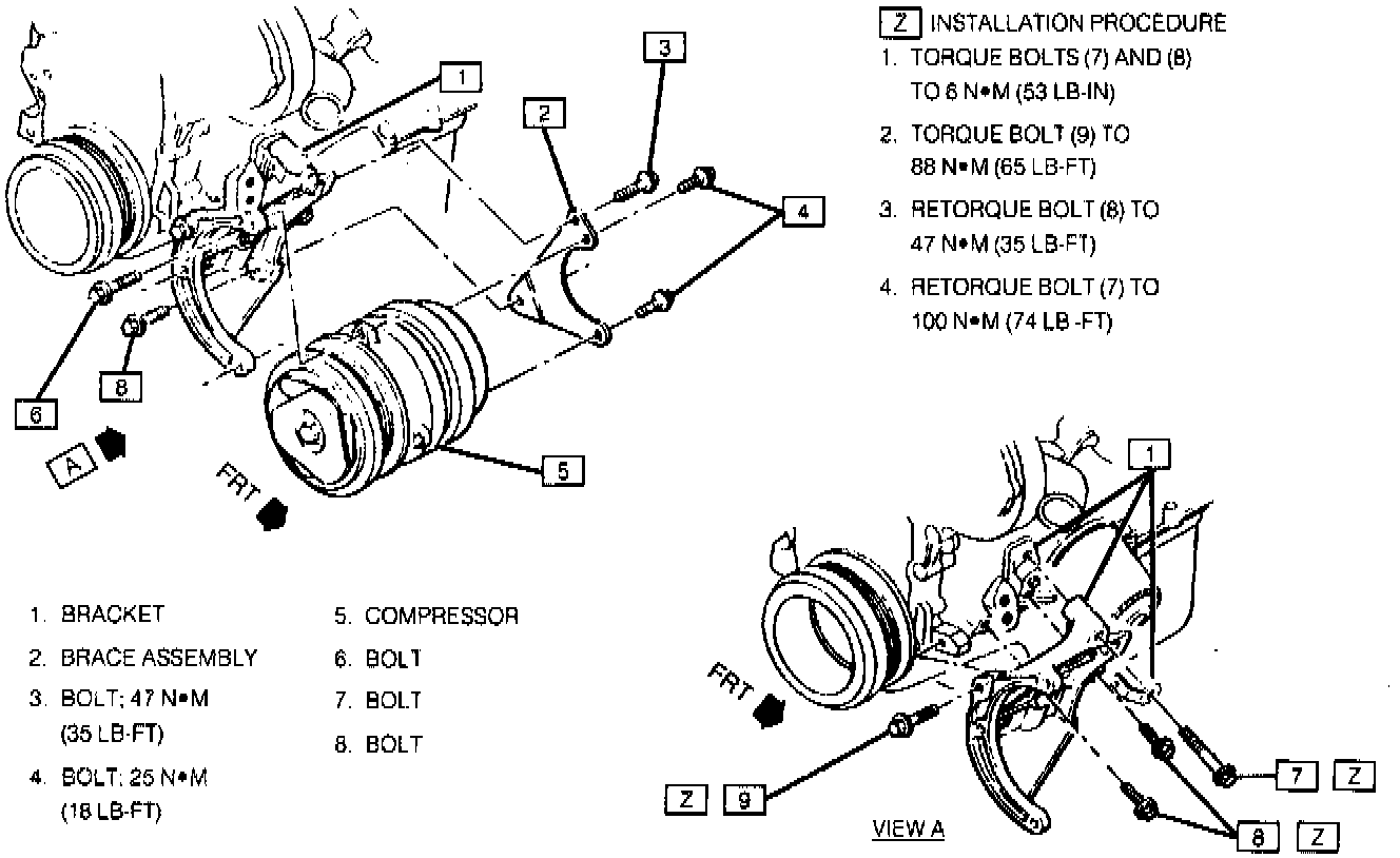 1. Compressor and attaching bolts.