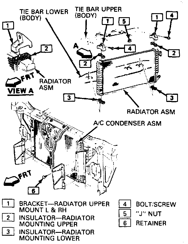 1. Condenser, tilting upward and inserting in front of radiator.