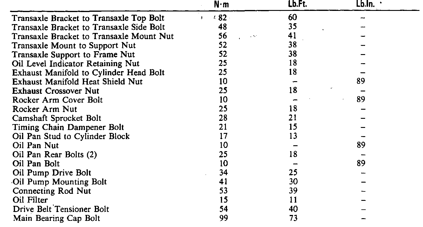 Torque Specifications:
