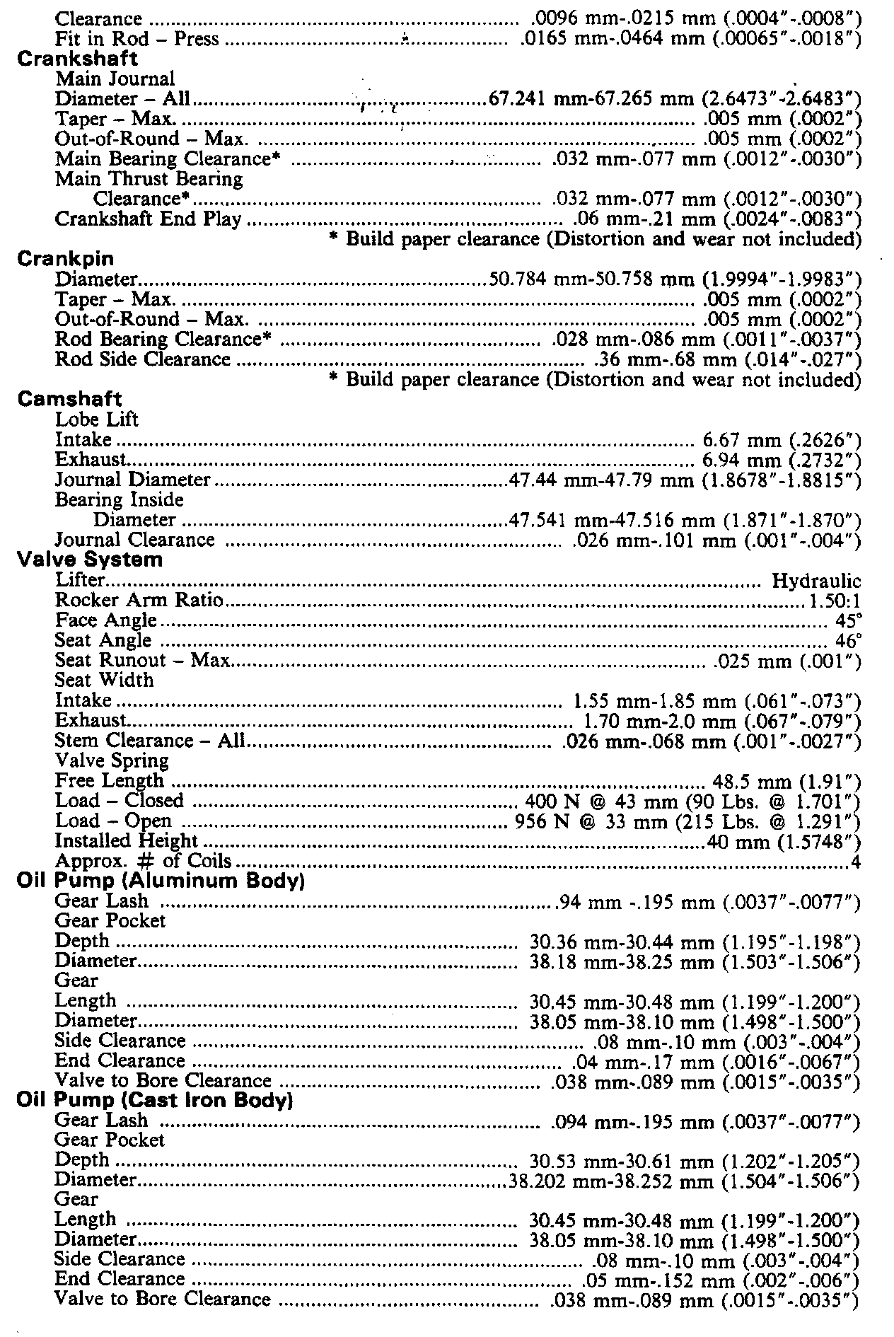 Engine Specifications: