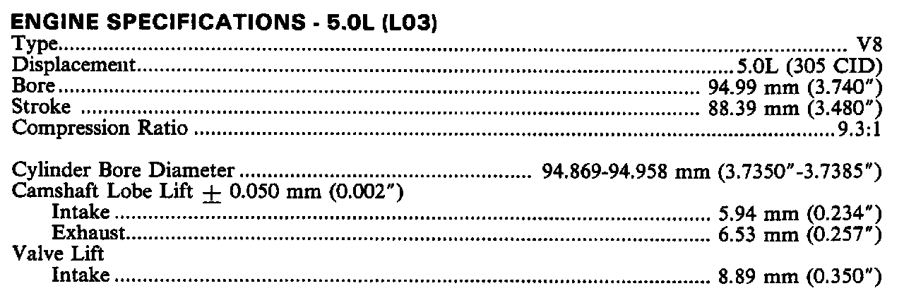 Engine Specifications 5.0L (L03):