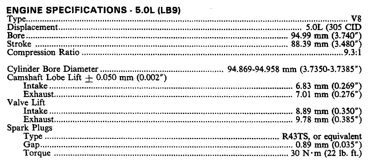 Engine Specifications 5.0L (LB9):