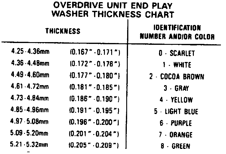 d. Read dial indicator. Endplay should be 0.0O4-0.025 inch. Refer to chart for proper washer thickness.